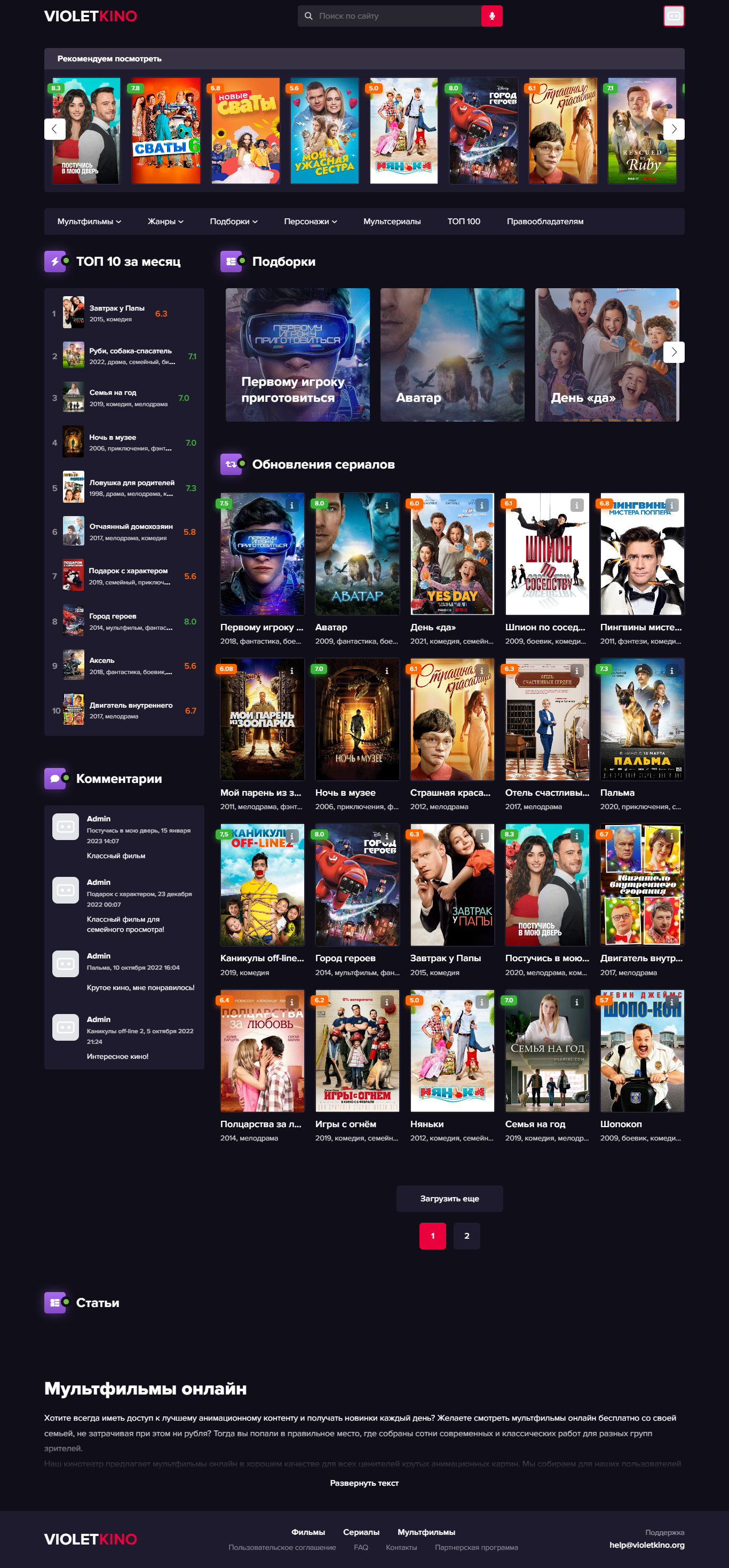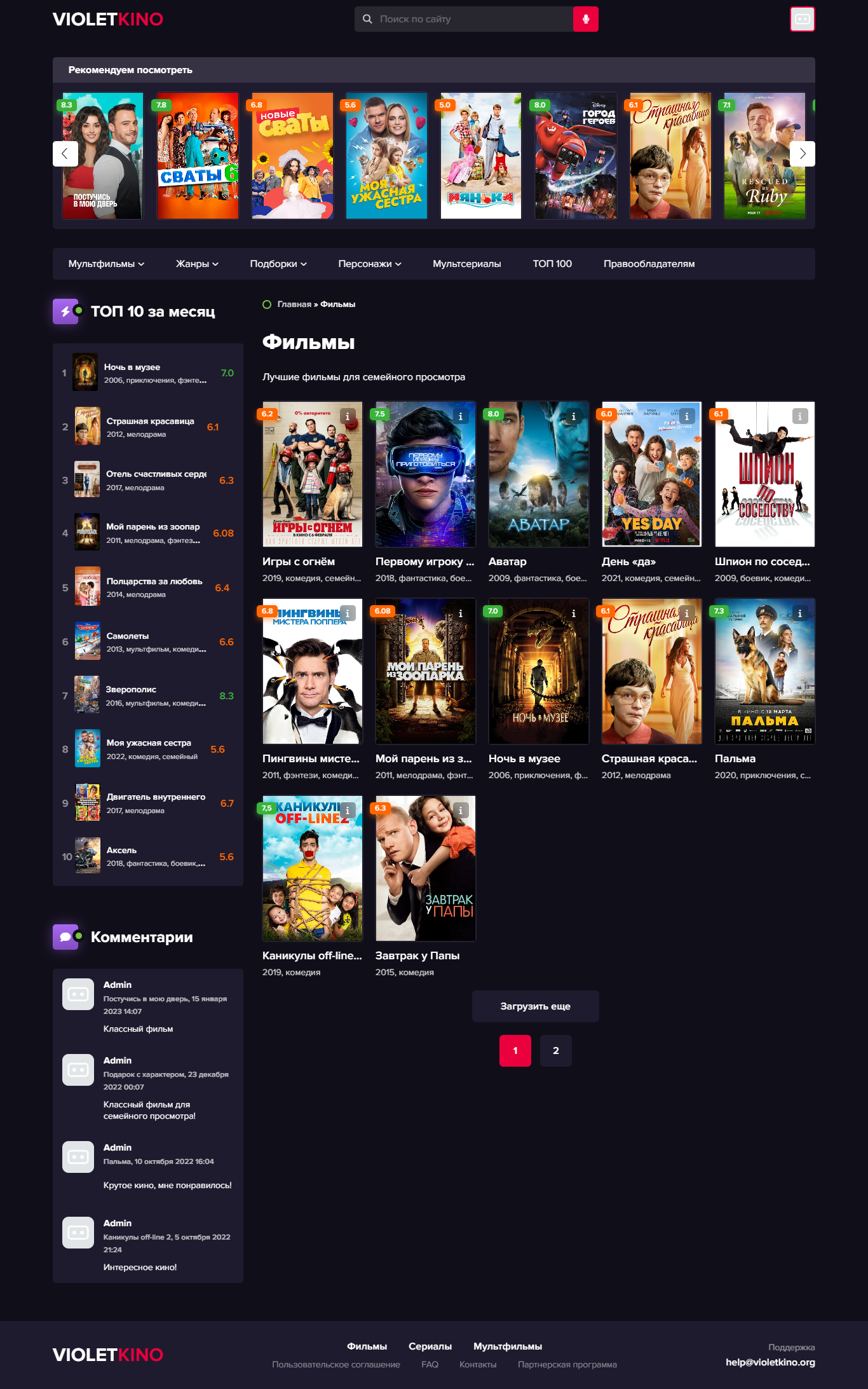 Шаблон "Violet" - это путешествие в эпоху старого модерна и старых кино порталов. Он приглашает вас насладиться изысканностью и элегантностью прошлого века и создать великолепный кинопортал.