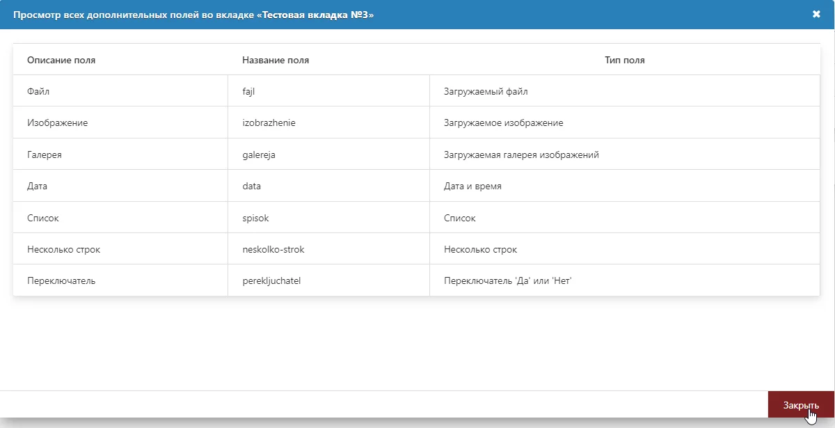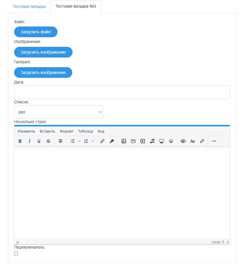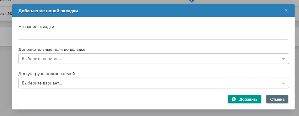 - Вкладки для упрощённого управления дополнительными полями: