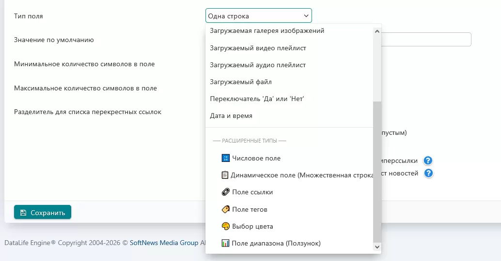 xField Extended Types (DLE 19.x и выше) - Расширенные типы дополнительных полей xField для DLE