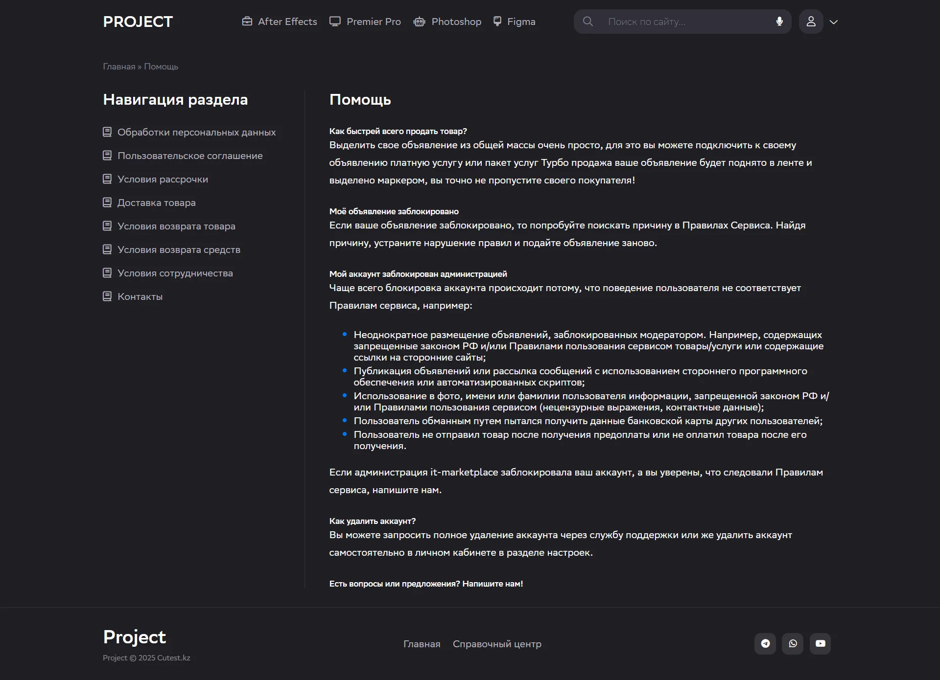 Project представляет собой стильный шаблон для DataLife Engine 18.0 в тёмно-синем дизайне, разработанный специально для онлайн-продаж цифровых товаров.