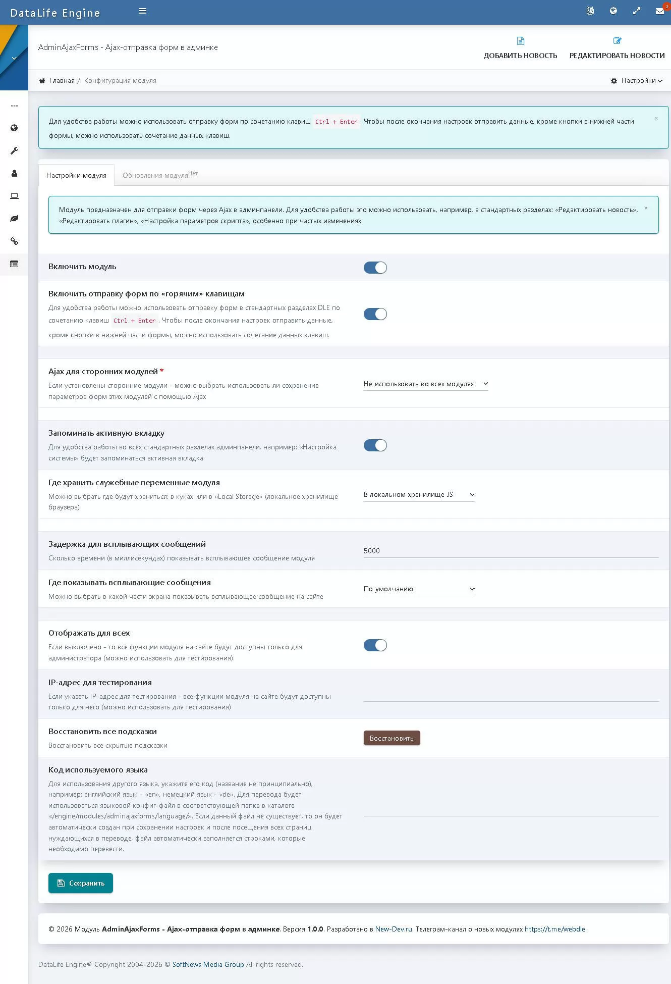 Модуль AdminAjaxForms для административной панели DLE: защита данных и ускорение рутины